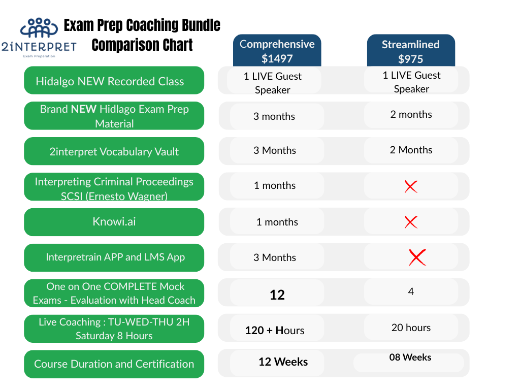 Our 10-12 week Oral Interpreter Exam Prep Coaching Bundle offers a powerful combination of live online coaching, exclusive new content, and advanced self-paced tools.
